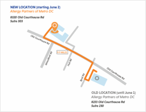 Any additional updates will follow as they become available. We will remain at our current office—8233 Old Courthouse Rd, Ste 230, Vienna, VA 22182 until the new clinic opens. Please note that we will be closed several days to facilitate the move. You may contact us with any questions or to schedule an appointment at (703) 404-4600.